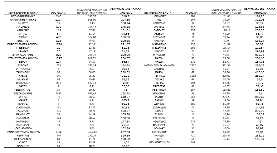 Αναλυτικά, η διασπορά των νέων κρουσμάτων ανά περιφερειακή ενότητα: