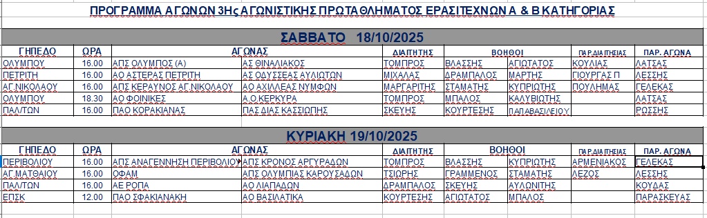 Δείτε το πρόγραμμα των αγώνων του Σ/Κ στα τοπικά της ΕΠΣΚ, καθώς και τους διαιτητές που θα διευθύνουν τις αναμετρήσεις. <img class="alignnone wp-image-59894 size-full" src="https://www.corfusports.com/wp-content/uploads/2025/10/cats-13.jpg" alt="" width="1023" height="316" />