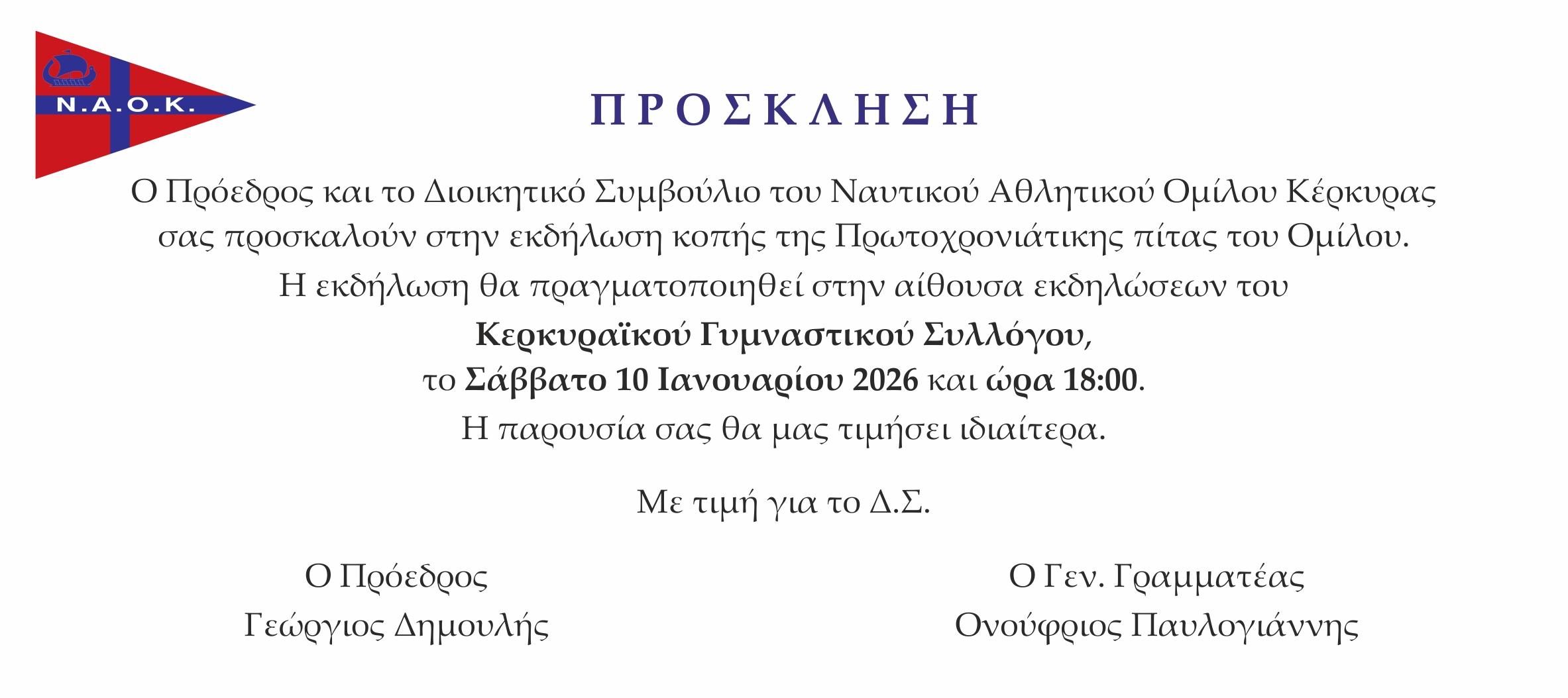 Στις 10 Ιανουαρίου, η κοπη πίτας του ΝΑΟΚ