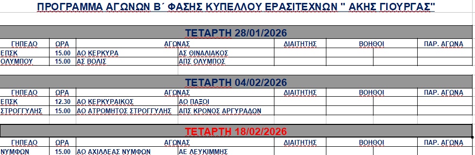 Τα πέντε νοκ άουτ ματς θα πραγματοποιηθούν τις επόμενες Τετάρτες, με αρχή στις 18/1 και φινάλε στις 18/2. <img class="alignnone wp-image-61252 size-full" src="https://www.corfusports.com/wp-content/uploads/2026/01/cats-12.jpg" alt="" width="978" height="319" />