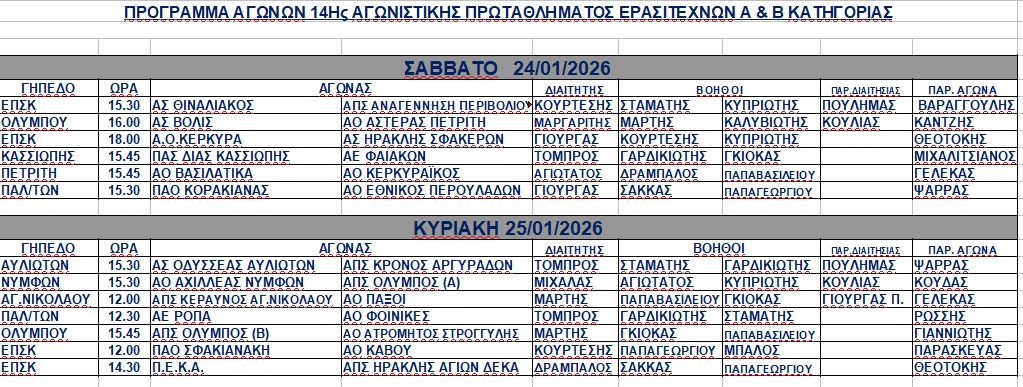 Η Ένωση ανακοίνωσε τους διαιτητές που θα διευθύνουν τους αγώνες του Σαββατοκύριακου.