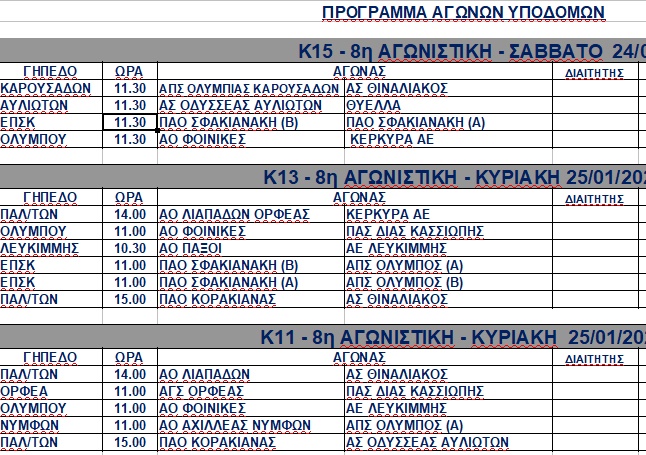 Η ΕΠΣ Κέρκυρας ανακοίνωσε το πρόγραμμα των αγώνων του Σ/Κ στα πρωταθλήματα υποδομών.