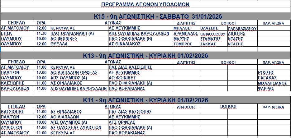 Το πρόγραμμα και οι διαιτητές των αγώνων υποδομών του Σ/Κ (31/1-1/2)!