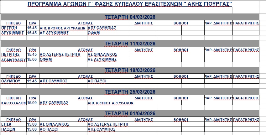 Η ΕΠΣΚ ανακοίνωσε το πρόγραμμα των αγώνων στη φάση των 8 του Κυπέλλου Κέρκυρας.