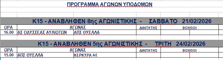 Η ΕΠΣΚ ανακοίνωσε τις ημερομηνίες διεξαγωγής δύο αναβληθέντων αγώνων των πρωταθλημάτων υποδομών. <img class="alignnone wp-image-61767 size-full" src="https://www.corfusports.com/wp-content/uploads/2026/02/cats-15.jpg" alt="" width="739" height="199" />