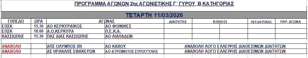 Την Τετάρτη ήταν προγραμματισμένα να γίνουν πέντε παιχνίδια για τη β φάση της Β ΕΠΣΚ, ωστόσο, τα δυο αναβληθηκαν λόγω έλλειψης διαιτητών.