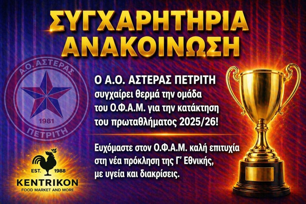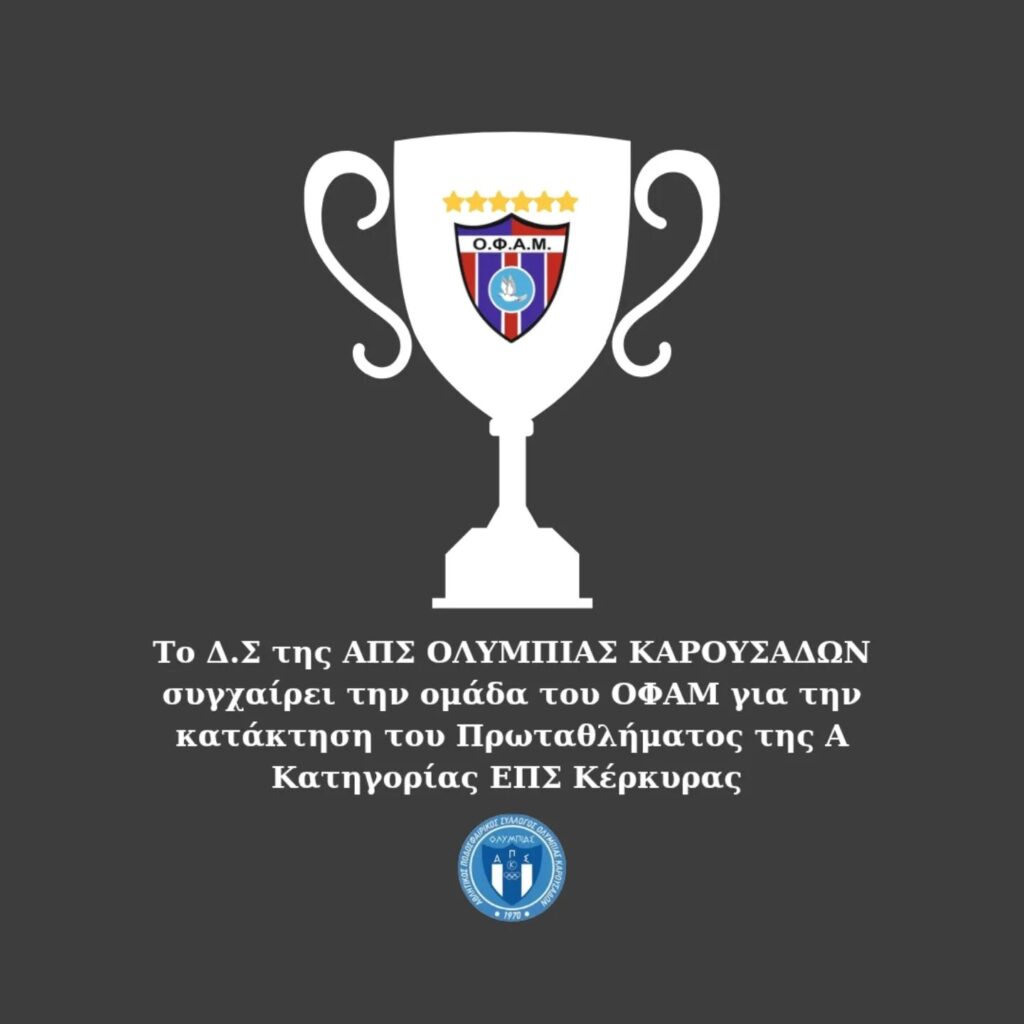 Με ιδιαίτερη χαρά συγχαίρουμε τον ΟΦΑΜ για την πανάξια κατάκτηση του πρωταθλήματος της Α’ ΕΠΣΚ.