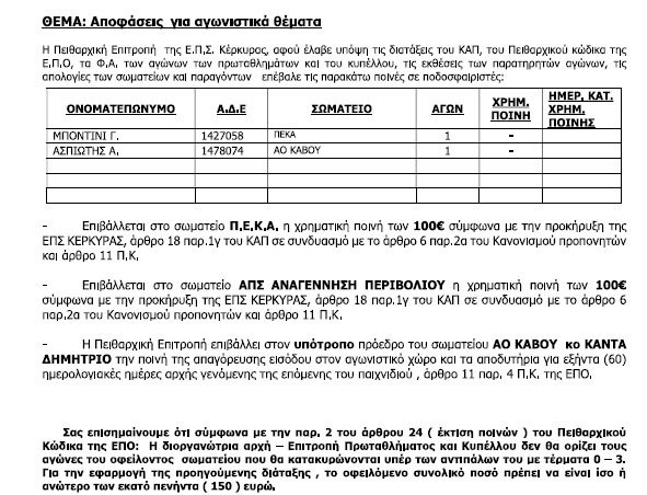 Δείτε το νέο ποινολόγιο της ΕΠΣΚ.